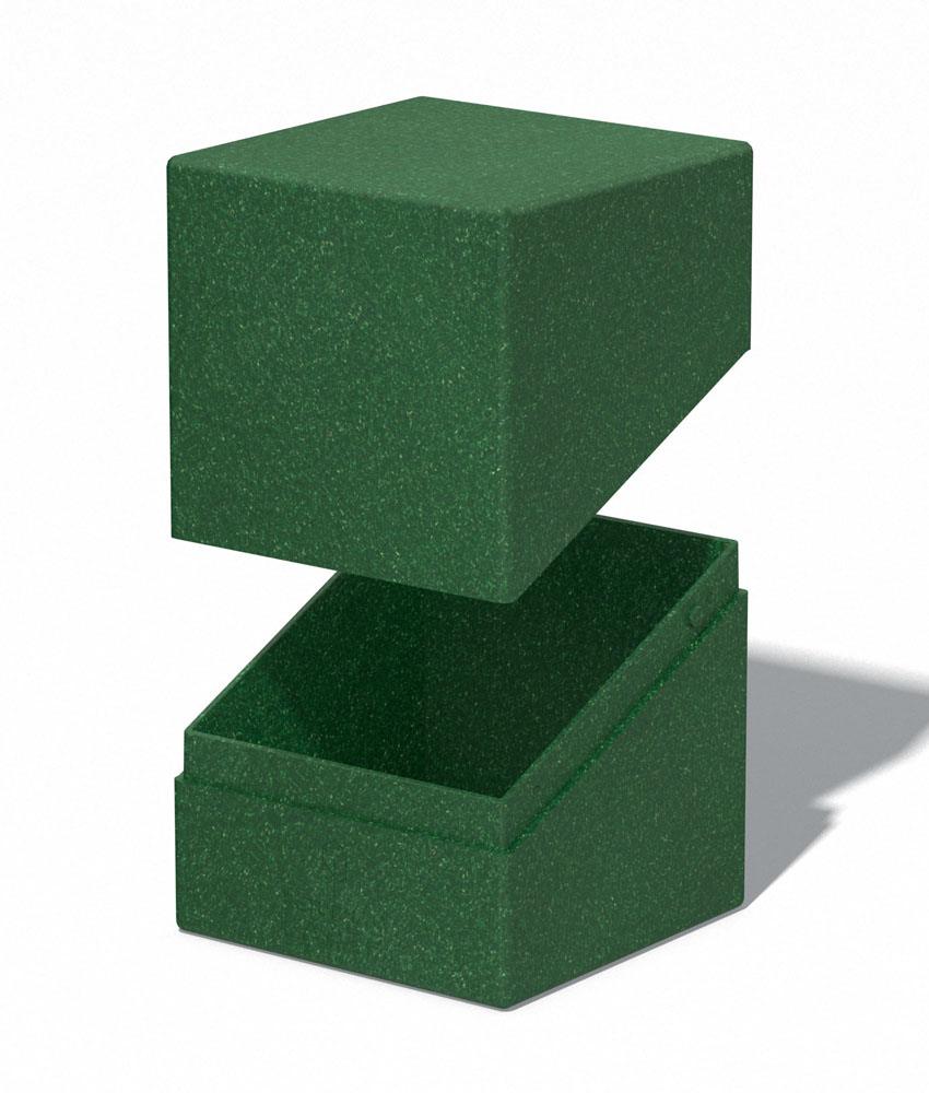 Desarrollado y producido en Alemania, este práctico y sólido Boulder 100+ con apertura súper fácil está compuesto en un 97% de recursos renovables, con un embalaje de papel de hierba certificado FSC. La caja para mazos es reciclable y tiene capacidad para hasta 100 cartas con funda doble o 120 con funda simple cuando se utilizan fundas Ultimate Guard.